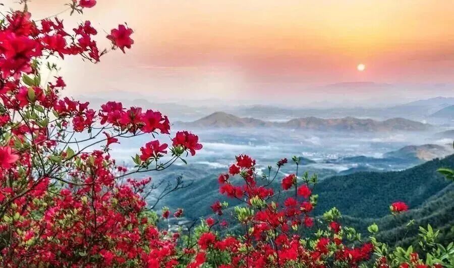 这里的杜鹃多历数十年风霜,枝干苍劲,花繁如锦。深红、玫粉、素白交织错落,开得热烈而烂漫,不沾尘俗,尽是山野清气。每逢三四月间,薄雾轻笼山间,花海若隐若现,一步一景皆入诗,风过处皆是温柔花香。