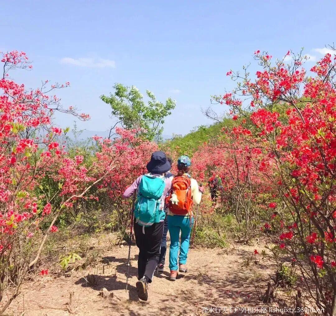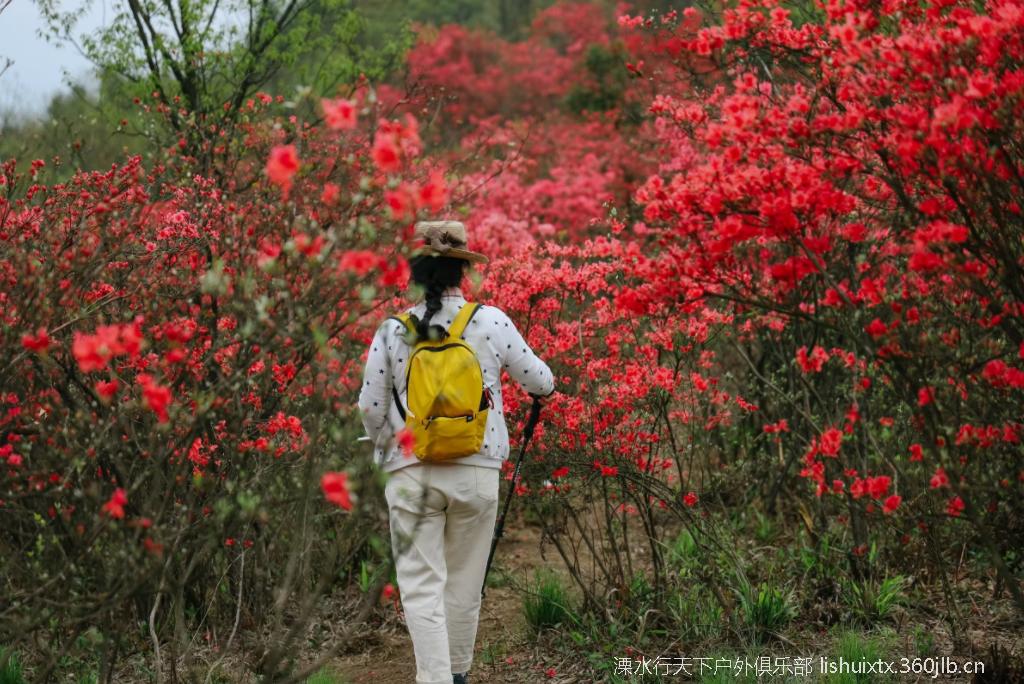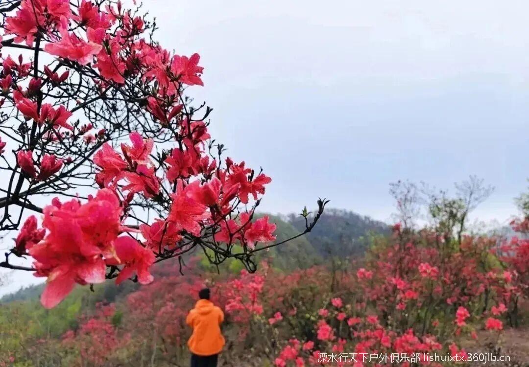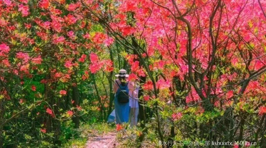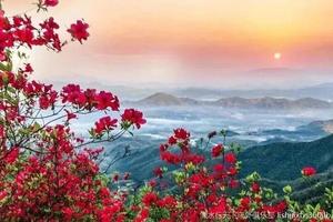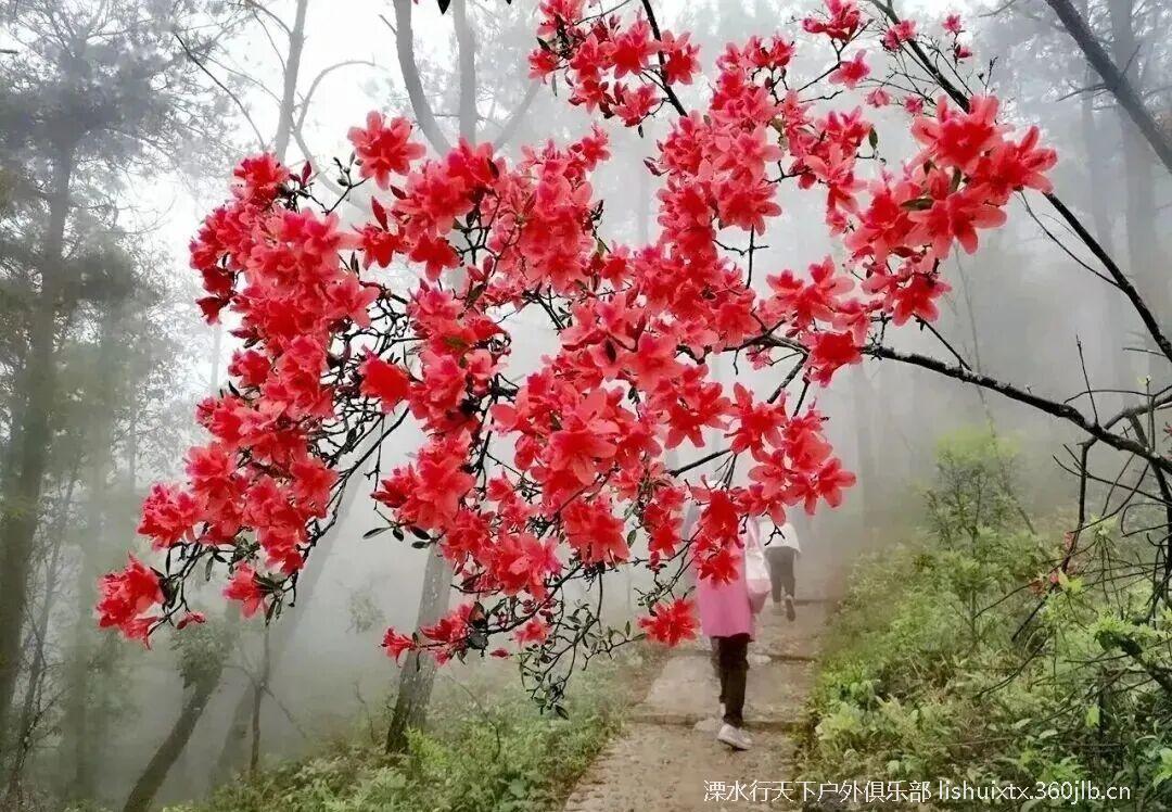 车程约2h左右到达金龙山山脚,在领队的带领下,踏着石阶古道, 穿过茂密竹林,只见林木葱郁,溪流阵阵,心情也十分愉悦。大约一个多小时的路程,翻越了万亩竹海,就可以看到火红火红的映山红在青山绿树之间云蒸霞蔚,一团团一簇簇,开得那么热烈,那么绚丽,花瓣儿密密匝匝,蕊靠着蕊,瓣贴着瓣,相互依偎竟相辉映,每一朵花儿,都空灵含蓄,如诗如画。